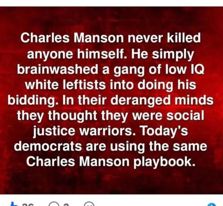100% true. And Manson was considered and genuinely is such an evil person. The same is true for leftist today.