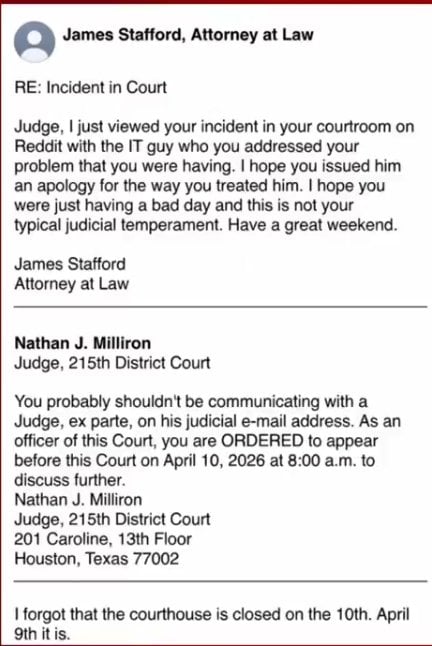 And the judge should have reserved his comments as well and just talked directly the the IT person’s direct supervisor on the matter