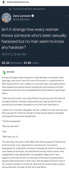 And he did acknowledge his mistake in public, in front of the other men in the office.