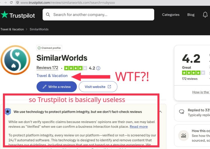and TP seems to admit it too is a useless site since it allows gaming the system with paid review schemes