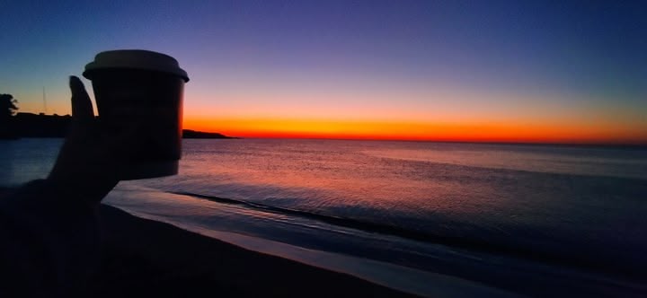 It's 5.55am. There's a coffee place nearby and the beach