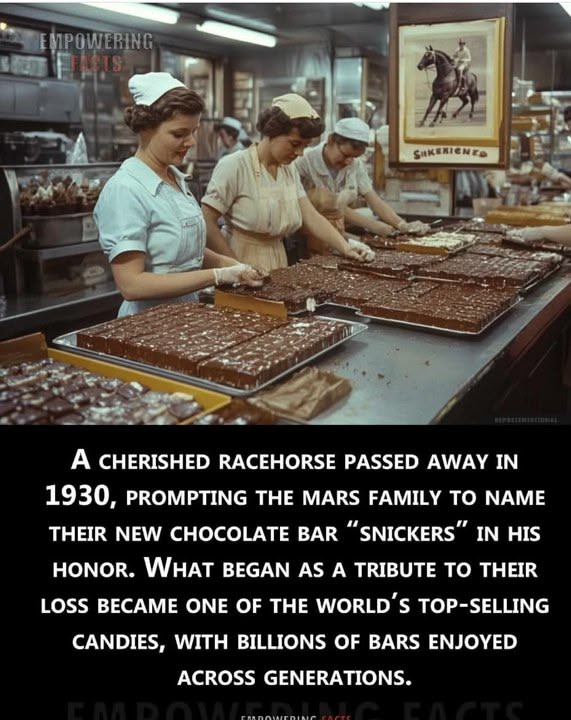 In 1930, the mars family lost their beloved racehorse, snickers—a cherished companion whose name would soon gallop into history in an unexpected way. seeking a name for their new chocolate bar, packed with nougat, caramel, and peanuts, they chose “snickers” as a heartfelt tribute. what began as a small act of remembrance turned into a global sensation.