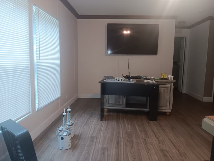 The painter came today and put the first coat on the living room walls and when we are done the baseboard is going to be the same dark color as the crown molding I think that will look great with the light tan the doors in the house are also going to be the same light tan with the same dark brown reddish trimI think that will give it great character and we are also doing the same trim around the windows as well. A definite cosmetic upgrade to the house. The next project will be the big one to rebuild the master bath after all the rooms are done