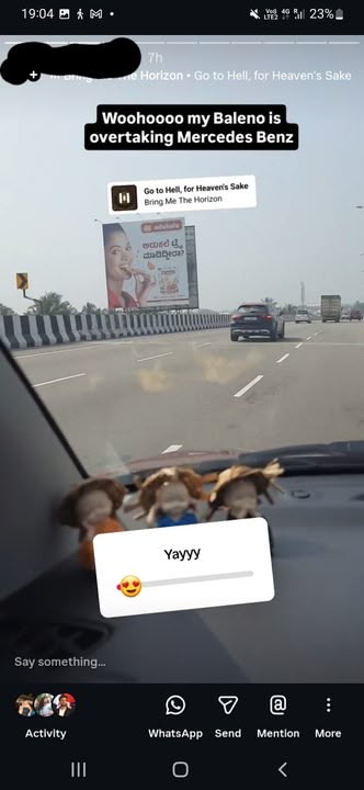 So today I came to this place Wayanad in Kerala state of India about 5.5 hours from our city Bangalore and we came in our car Maruti Suzuki Baleno and we were going really fast on the highway and in thrill i filmed all the overtaking and posted on Instagram stories but do you feel they are silly especially for my age(turned 25 just a few days ago)? Below are the some of the screenshots of my Insta stories
