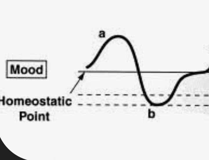 The idea being, if you are super happy, (or super sad), and then it passes....and you come back down, (or up) to normal basline ....your baseline has been reset due to your heightened emotions.