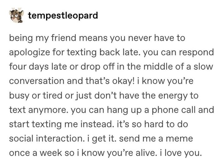 But what I'm saying is don't expect me to commit my time 24/7 or even regularly for that matter. I reply when I am in the mindset for it or am interested enough. Most of the time, I have other priorities. I have a life that requires my attention.