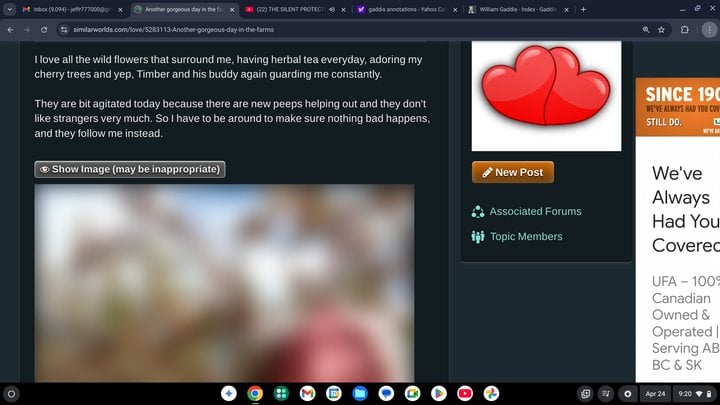 I love all the wild flowers that surround me, having herbal tea everyday, adoring my cherry trees and yep, Timber and his buddy again guarding me constantly.