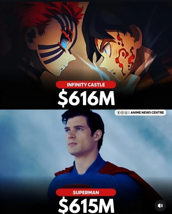 Demon Slayer Infinity Castle movie has passed Superman 2025 now, it's at $616 million. Superman 2025made $615 million. This is WILD. Demon Slayer had a budget of 20 million and it's an anime movie, an anime movie has never made this much money before, it's beat Superman! And this is just the first movie out of this big Infinity Castle finale trilogy, the other 2 are supposed to be even better 🤯