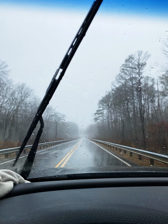 Listening to music while the rain softly hits your windshield with fog constantly on the horizon is such a vibe.