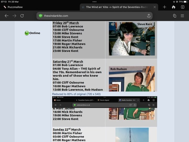 Radio Caroline Spirit of the Seventies until March 22nd Linkhttps://www.radiocaroline.co.uk/sots_player/player.html?v=1773990108723Live from Ross Revenge featuring DJs who were on Mi Amigo in the seventies.Today is the Anniversary of the Mi Amigo sinking causing Caroline to disappear for three years. Post Comment Receive notifications Add a comment...