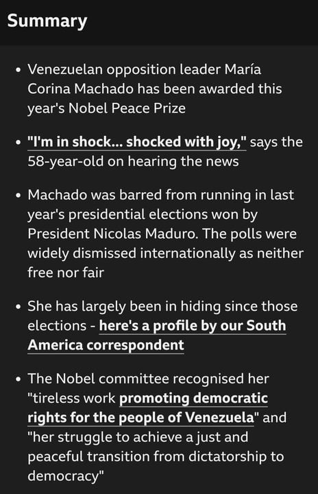 @FoxyQueen Well, it's not really for me to tale sides in a foreign country's internal unhappiness, but I am sure the Nobel Prize committee members are very well aware of everything a candidate does, not just the headline-grabbing actions that take all the attention.