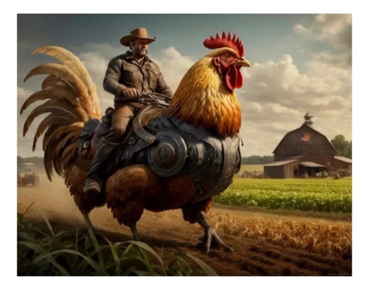 Genie "on all fours? But a cock has only two legs. Nevermind I'll just put three"