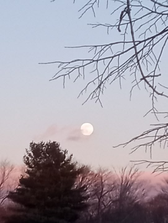 I got up early to feed the cats before I had to get ready for chemo this morning. Saw the full moon.