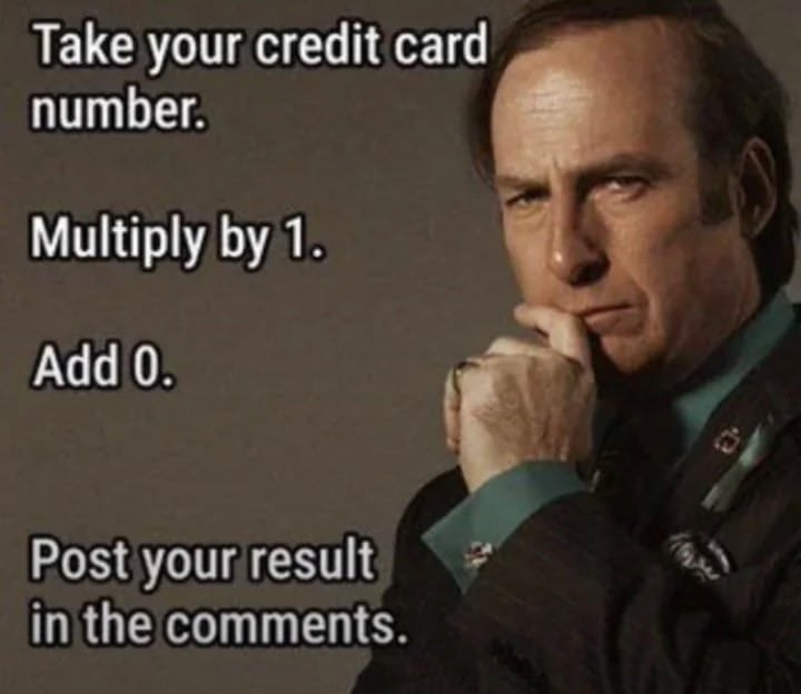 0 cause I don’t have a credit card. And if I did I wouldn’t have answered this question, 😆