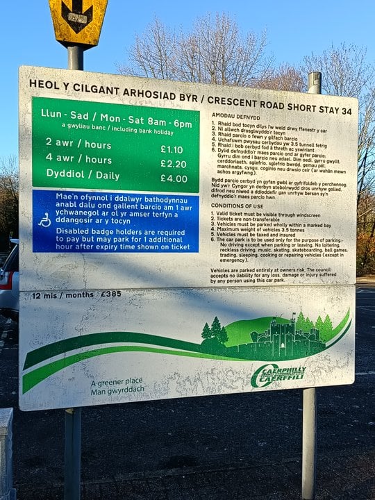 Crescent Road Carpark is near Caerphilly Castle and yet doesn't allow overnight parking for Campervans I have attached two photos regarding Crescent Rd carpark the Welsh Tourist Board &, Caerphilly Council should be able to sort this out. Tourists with Campervans are having a bad deal.