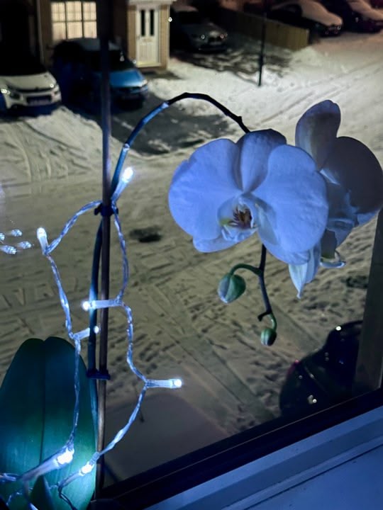 I have white orchids on my window.