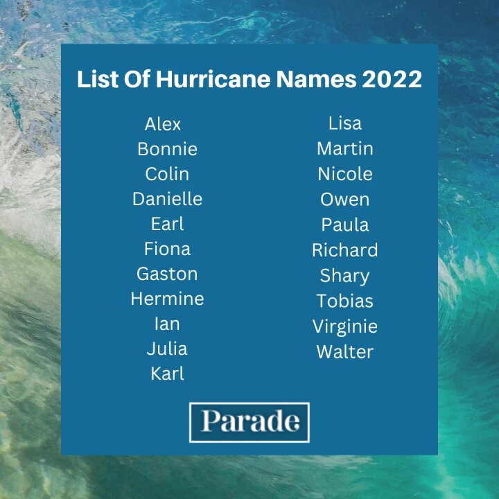 Here is the complete list of hurricane names for 2022, with the bolded names representing storms that have already taken place this year.