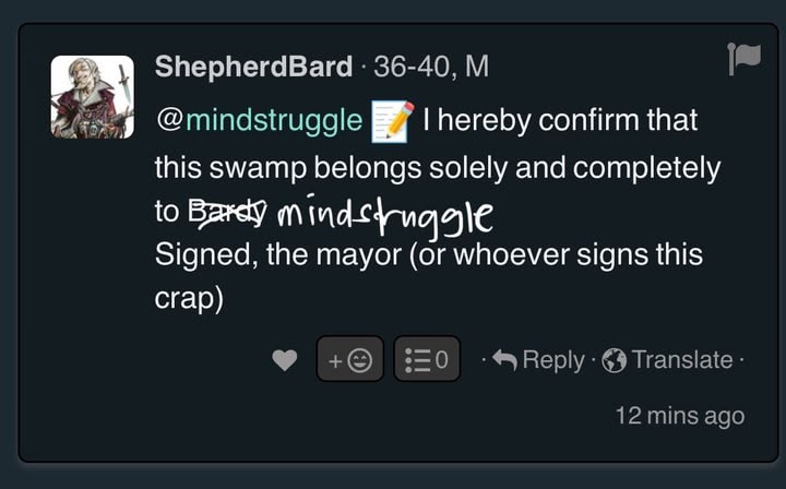 @mindstruggle 📝 I hereby confirm that this swamp belongs solely and completely to Bardy