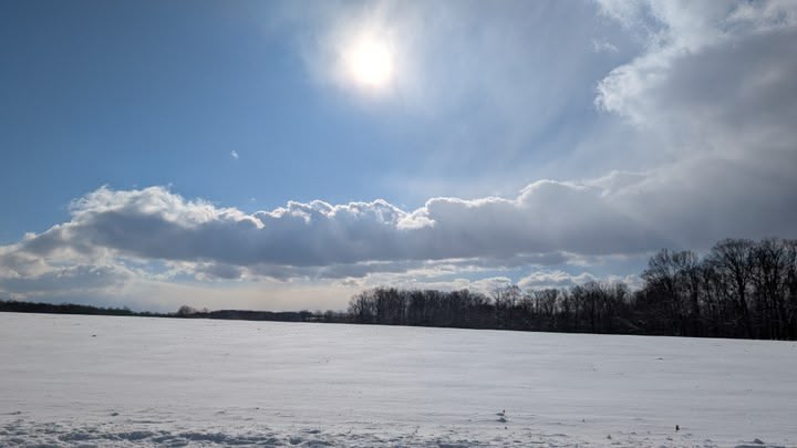 The snow has begun. It will take an unfortunate turn later when the wind picks up, but for now, it’s just falling. Big wet heavy snowflakes falling straight down. I love the sight. I love how you can tell how heavy it is by how fast it falls yet how separate it seems from gravity, as if it will complete the journey in its own good time. How you can watch it from inside and feel the same peace and silence you’ll feel if you stand out in it because the association is so strong and consistent. A couple walked by on the trail as I stood watching out the window, and I could hear the soft crunch of their footsteps and feel the wet little whisper of snowflakes touching their cheeks, the exhilarating contrast of the cold exposed skin and the toasty warmth of the protected. I don’t feel well so I won’t be going out, but I can watch the snow and not miss a thing. Magical stuff. ❄😌