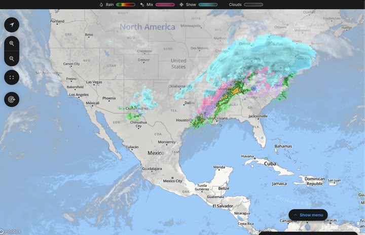 I'm looking at the continental radar and cloud map again and I still don't understand really where this storm is coming from, like is it starting in Mexico, is it starting the Pacific southwest of Mexico, or what (there's a clear diagonal line of clouds down across Mexico and into the Pacific for example):