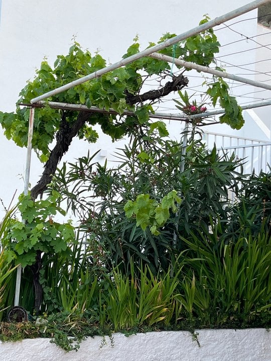 The ancient vine Hard pruned two years ago. Now showing much growth.Produces small sour grapes, suitable with gin on a long summers evening, sitting on the terrace. Post Comment Receive notifications Add a comment...