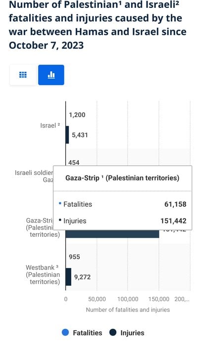 https://www.statista.com/statistics/1422308/palestinian-territories-israel-number-fatalities-and-injuries-caused-by-the-israel-and-hamas-war/