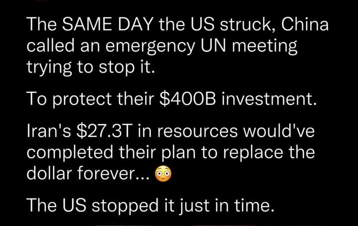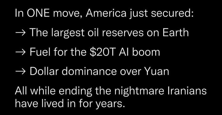 And I do agree it is 100% about oil and natural resources and who has their hands in control. Like Venezuela Trump wants Iran, and like Putin what Trump wants Trump takes or try to take.
