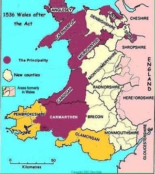 slightly tenuous but I'm including it-From History of Wales The Laws in Wales Acts 1536 and 1543 were the result of Henry VIII's desire to restrict the power of the Marcher Lords. Henry charged his chief minister, Thomas Cromwell with finding a solution by reforming the governance of Wales.