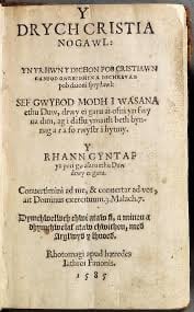 On 14th April 1587 printing material for illicit Catholic literature was found in a cave on the Little Orme. It had been used by Robert Pugh, squire of Penrhyn Hall, and his chaplain William Davies to print Y Drych Gristianogawl ('The Christian Mirror'). Arguably this would make Y Drych Gristianogawl the first book to be printed in Wales. It was written by Gruffydd Robert, Archdeacon of Anglesey, who went into exile in Italy after the accession of Elizabeth I of England. He also wrote a pioneering Welsh grammar in Welsh.