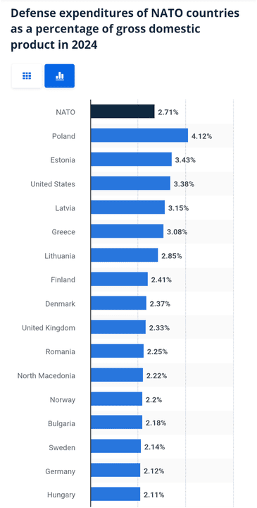 @BizSuitStacy No one pays NATO! The agreement is when signing up to be a NATO country is 2% of the countries GDP will be spent on the countries defence.