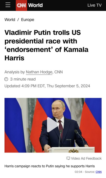 Putin Endorses Harris