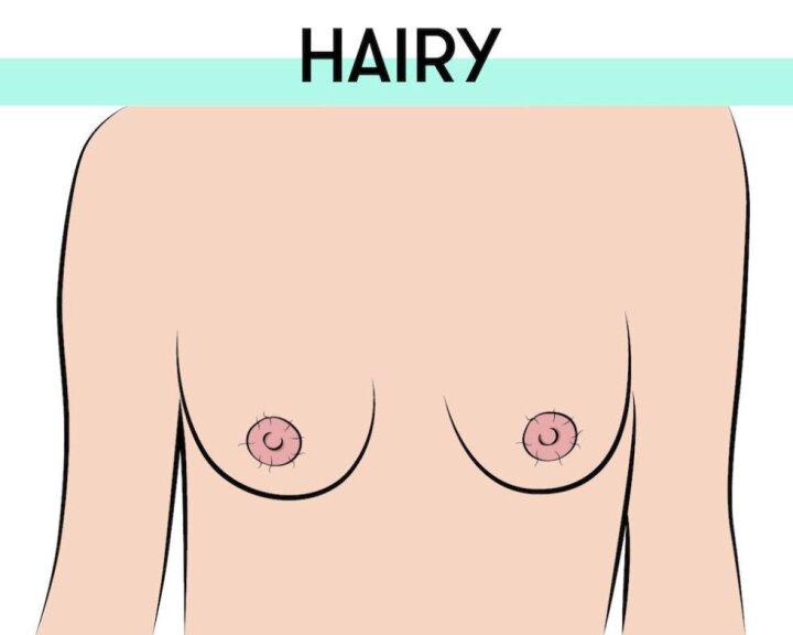 Hairy: Stray, dark hairs growing out of the areola area are normal. They might be fine or coarse. It's safe to pluck them out with a tweezer. Every woman has hair follicles, but some people are hairier than others.