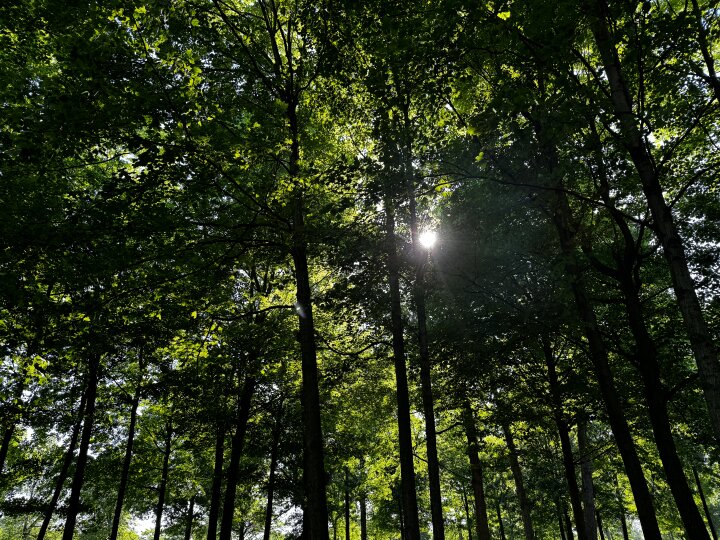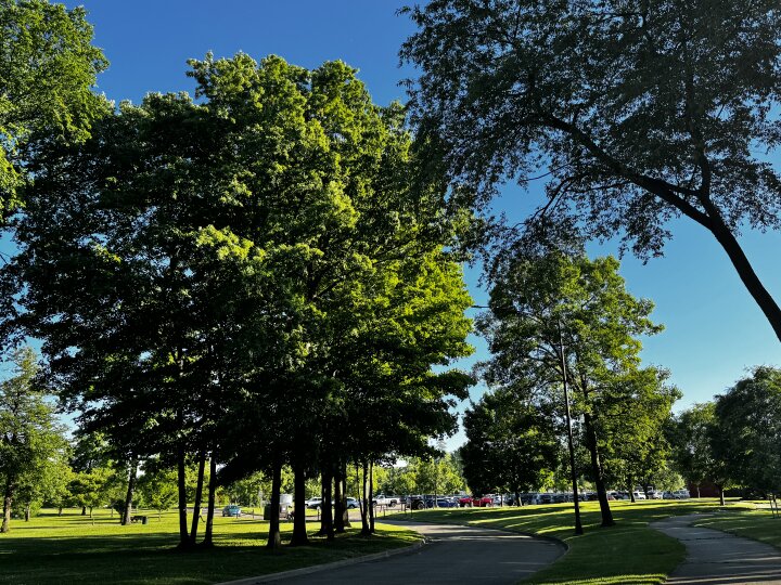 What a beautiful day! I love the dappled light from the trees and the blue sky against the green fresh leaves.