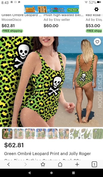 I don’t like the patterns on the other two. And I don’t like the bikini style on the top photo. It’s too granny Ish I wouldn’t even wear that style and I’m almost 60.