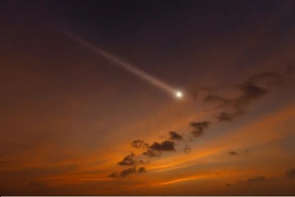 Sometimes embers trail off the tail, scattered across the sky.