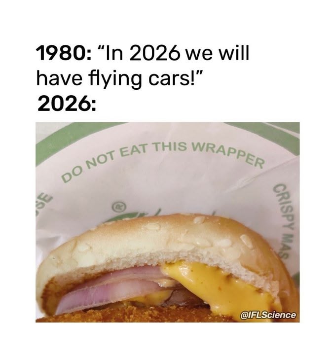 1980? We were promised flying cars back in the 60`s. As for eating the wrapper there just might be some nourishment in that.