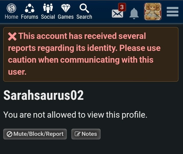 🤔🤔🤔 Hmmm. Is that a block done by Admin to protect YOU? I mean...that's a serious warning about old Sarah.