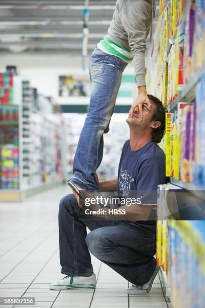 So I go-go-gadget’ed my arm and grabbed a jug for her. She was delighted, but needed two. There was no way I could reach the one behind it since it was pushed to far back for anyone to reach. There was one to the side though that was sitting all cattywampus, so I decided to put the inflated height ego to the test.