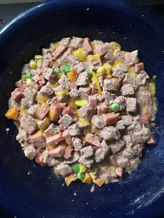 @bijouxbroussard Today was a treat. Normally it’s just the fresh pet with either the sausage or a little cheese. But every now and then I like to put it all together with some extra veggies for him as an “I love you” meal 🙂