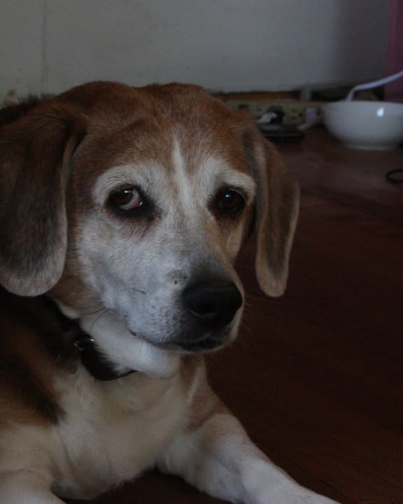 We have a 13-year-old beagle named Sissy. She was a rescue pup who had been through 2 owners before us because Beagles love to talk a lot. We love how verbal she is, and we have always sat around and bayed with her. She loves to sing with me when I sing, too. We have had her for almost 11 years, and for the last two years, she has struggled greatly with arthritis in her back hip. 😥