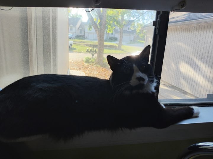 He's made himself right at home, and is doing sentry duty for birds and squirrels...🤣🤣🤣