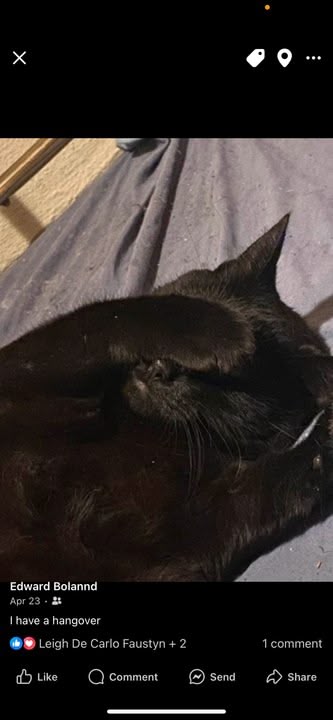 Well, hello, Sabrina. My tomcat, Saint, could have been your twin brother. Solid black, including the pads of his feet. He would wait until I went to bed, jump up next to my head, wait for me to lift my covers and make his way down behind my knees and curl up for the night. You are such a cutie. 🐱