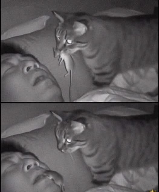 Cat: "Daddy...I hunted for you! Are you hungry? I LOVE you!!!" 🤣🤣🤣