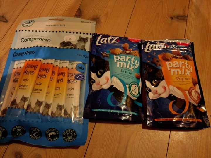 I buy Pawsome Pockets for my sister's cat, he loves them and they're quite cheap from Aldi or Tesco. They come in beef, chicken or salmon flavours and the ingredients are the same as expensive ones.