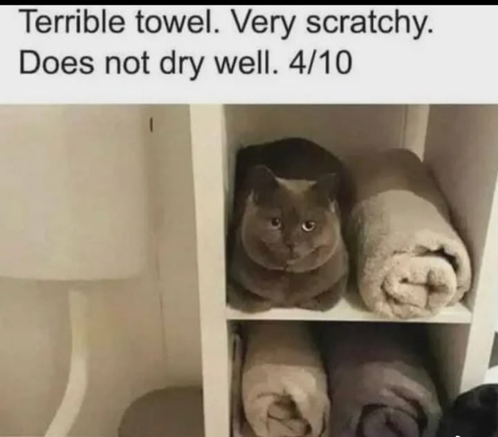 My towel is very similar just in white and does a fine job of drying me 😌 aka licking lol