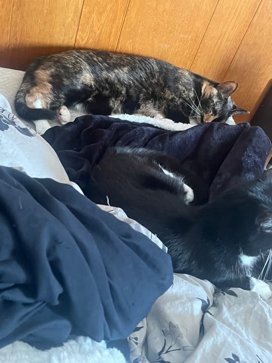 The calico is definitely doing a side-eye death stare, to which nothing positive will ever be. Or, it's doing the Gandalf sleeping thing. Either way, I'm boned.