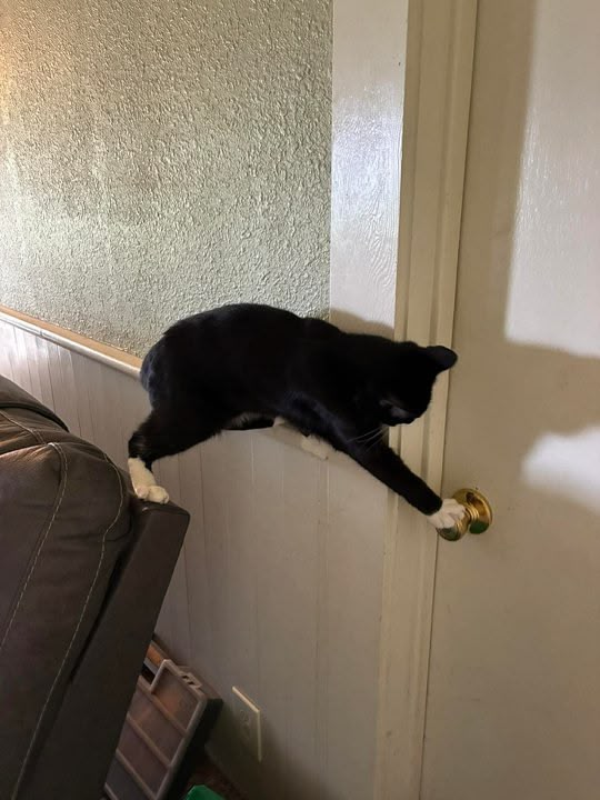 He’s trying hard to open that door.