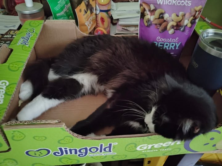 I think this cat actually likes plastic bags better than boxes which kind of scares me because I'm afraid he's going to get stuck in it and choke himself