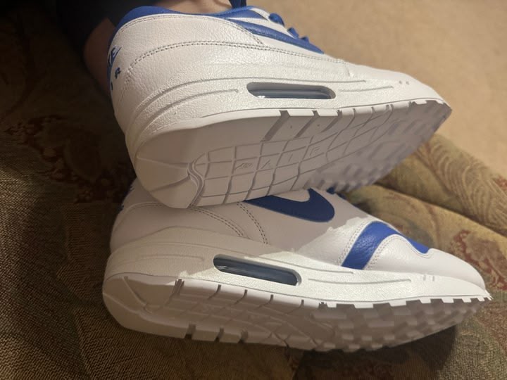 Oooooohhh brand brand new Nikes!!!!!!! Mmmmmmm I sniffed and licked hungrily as Alicia petted and fussed over me. She was wearing them sockless and the leather was soooo hot and moist as I pressed my nose into them. Right now she is watching TV on the couch and I am laying at her feet and sniffing and licking those new Nikes voraciously: