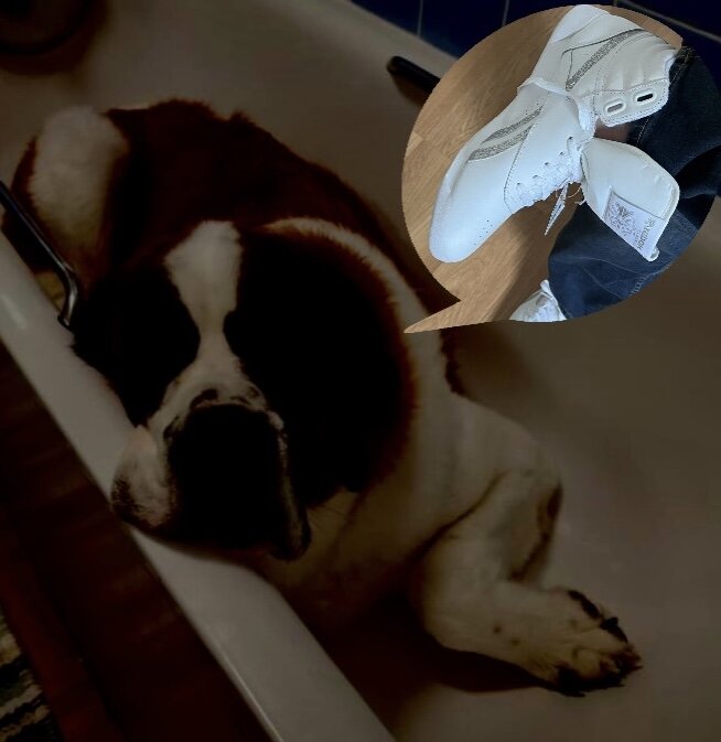 She said I have to be a good boy if I want to eat them all up for dessert. Oh the slobbery Reebok dreams I have had for the past week or so have just been amazing!!! Well, tonight I find out that she is doggysitting me tomorrow after school. OHBOYOHBOYOHBOY!!!! I’m beyond hungry and frisky for her new Reeboks right now!!! I doubt I will get any sleep tonight!!!: